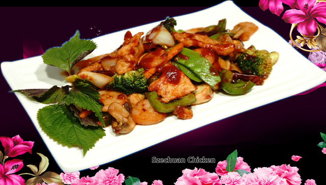 Stir-fried carrot, snow peas, green pepper,onions, mush- rooms, broccoli in red spicy sauce